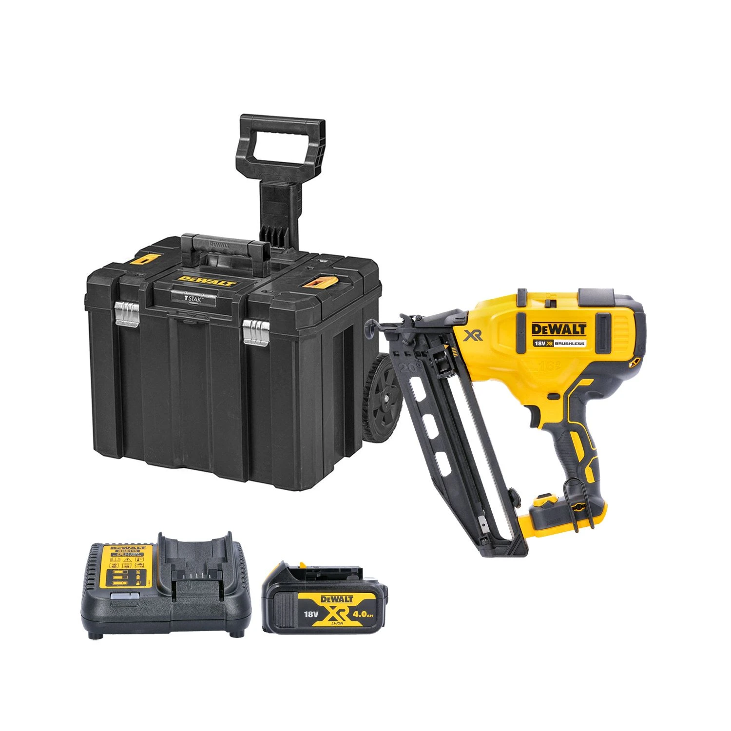 DeWalt DCN660 18V XR Brushless 60mm Second Fix Finishing Nailer With 1 X 4.0Ah Battery, Charger & TSTAK Rolling Box
