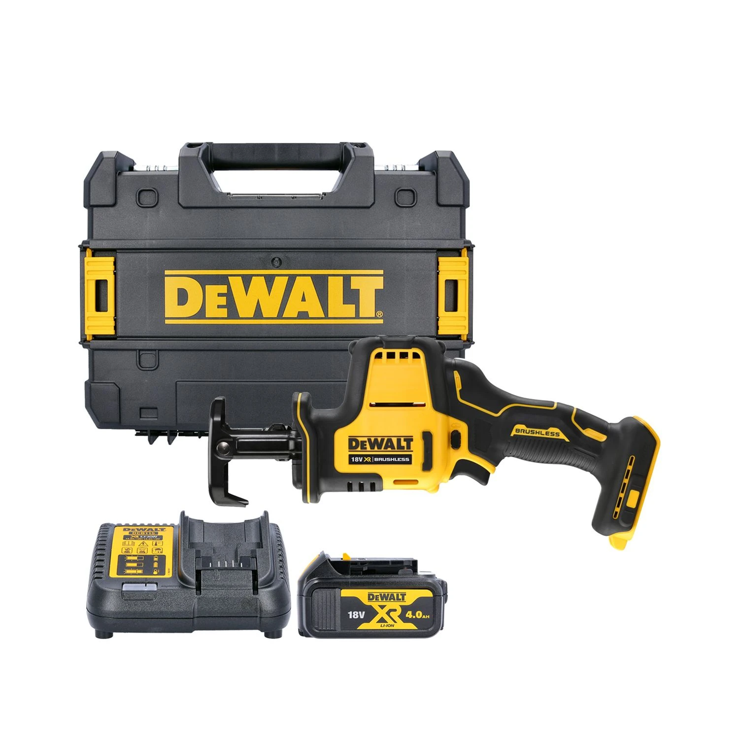 The DEWALT DCS369N 18V Brushless Sub Compact Reciprocating Saw is a brilliant tool for cutting through wood, metal and piping. As such, it is ideal for professional carpenters, plumbers and also DIY enthusiasts making home improvements. Its brushless motor means it maintains maximum power when working under load and it will have a maximum life length as its motor has less moving component to break. The Variable speed trigger gives the user the upmost control and provides smooth cutting and shaping. Able to cut into pipes up to 40mm and PVC to 90mm it is a versatile tool that can tackle a range of sawing applications. To illuminate the cut line and allow you to work in dimly lit areas there is an LED work light. Changing blades is made easy and completely tool-less thanks to the keyless blade clamp.