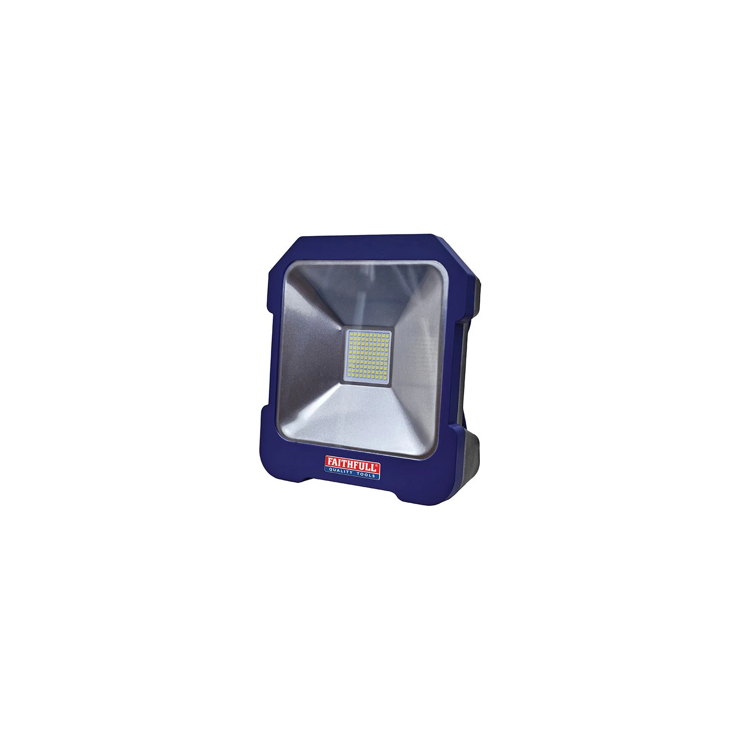 The Faithfull Power Plus SMD LED Task Light has a highly efficient 20 Watt SMD (Surface Mounted Diode) LED that provides an extremely bright, glare-free 2,000 lumens of light output and is mounted in a heavy-duty, impact resistant case rated to *IP44/54. A mirror backed reflector improves the light output and beam spread of the work light, which also has the added benefits of an integrated power take-off socket, allowing the series linking of lamps or for use with power tools*. The lamp has a 3m x 0.75mm² cable and a built-in storage system and is fitted with an approved 240 or 110 volt plug. LED work lights have many uses around the work site or home, providing a glare free bright light that avoids the high heat output associated with halogen bulbs. These lights are cool running and eliminate the fire and burn hazards associated with halogen lighting, which make them ideal for tradesmen who are working close by. They also have the benefit of not drying out plaster or similar finishes too quickly (which can happen with the heat emitted from halogen lights) which can result in cracking.