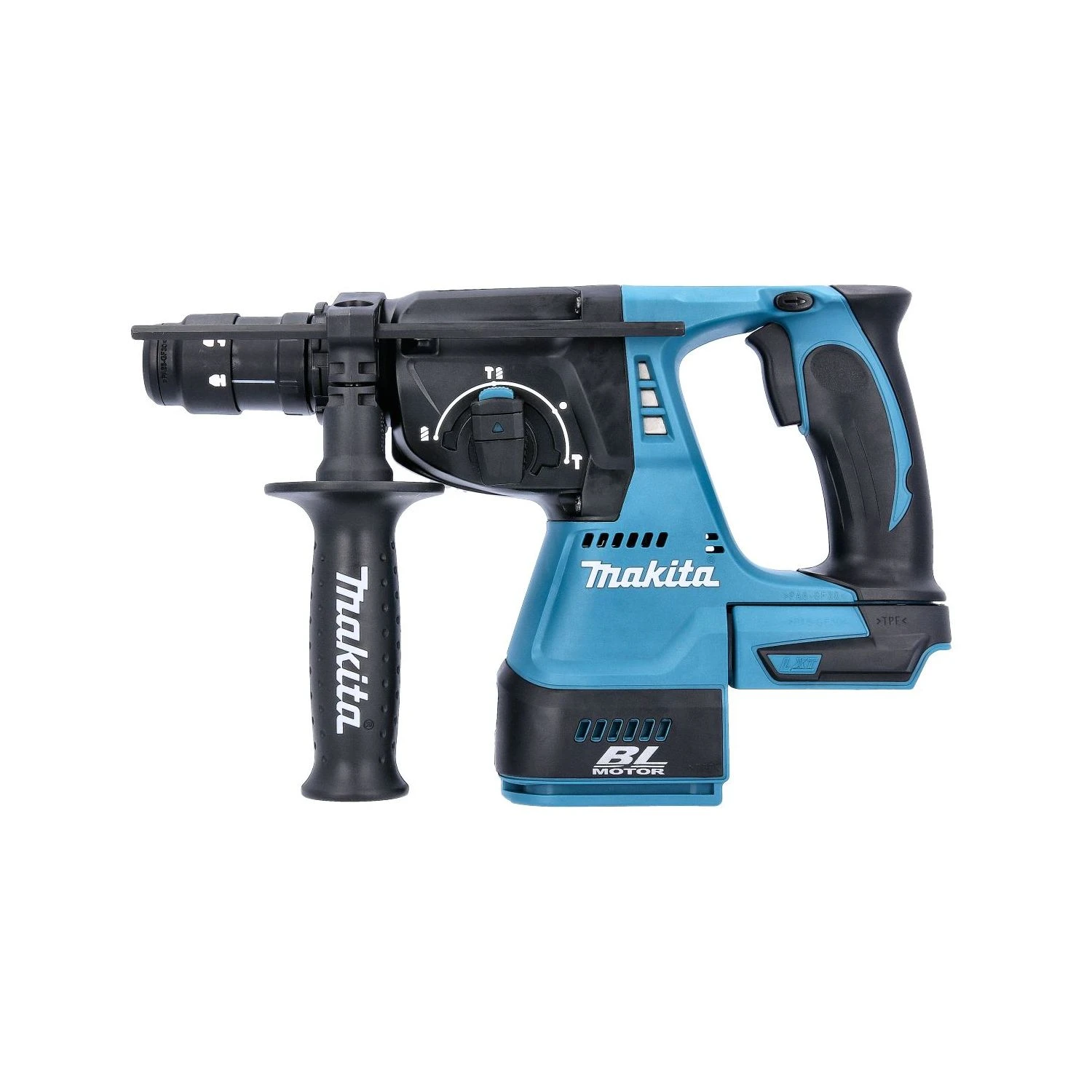 The Makita DHR243Z 18V SDS Plus BL Rotary Hammer Drill Bare Unit is ideal for professional and DIY use. It is a 24mm (15/16″) Cordless Combination Hammer powered by an 18V Li-ion Battery. This rotary hammer features an efficient Brushless DC motor which provides higher productivity than that of the 18V DHR202. The ergonomically designed easy-to-grip handle is designed to give maximum power thrust and provide a sure and comfortable grip in any operation, overhead application, drilling with palm-up or palm-down grip as well.