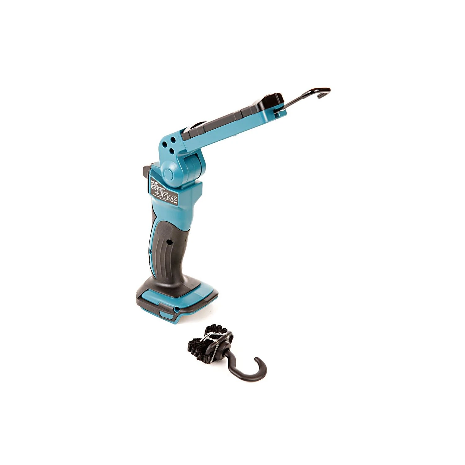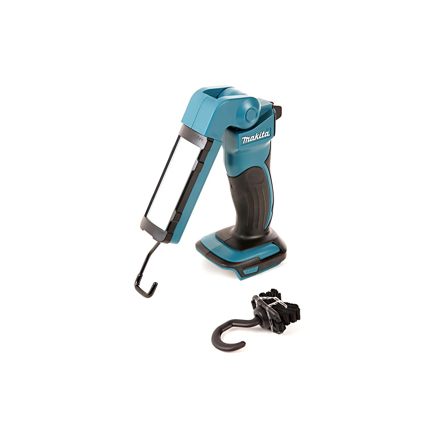 - Easy to use: Select full power or half-power easily with the 2-stage push-button switch. The light head rotates a full 360°, and has 7 click-stop positions. You can hang the Makita DML801 Cordless LED Torch anywhere and easily thanks to the convenient metal hook, which can swivel a full 360° and then be retracted and stored behind the light head.