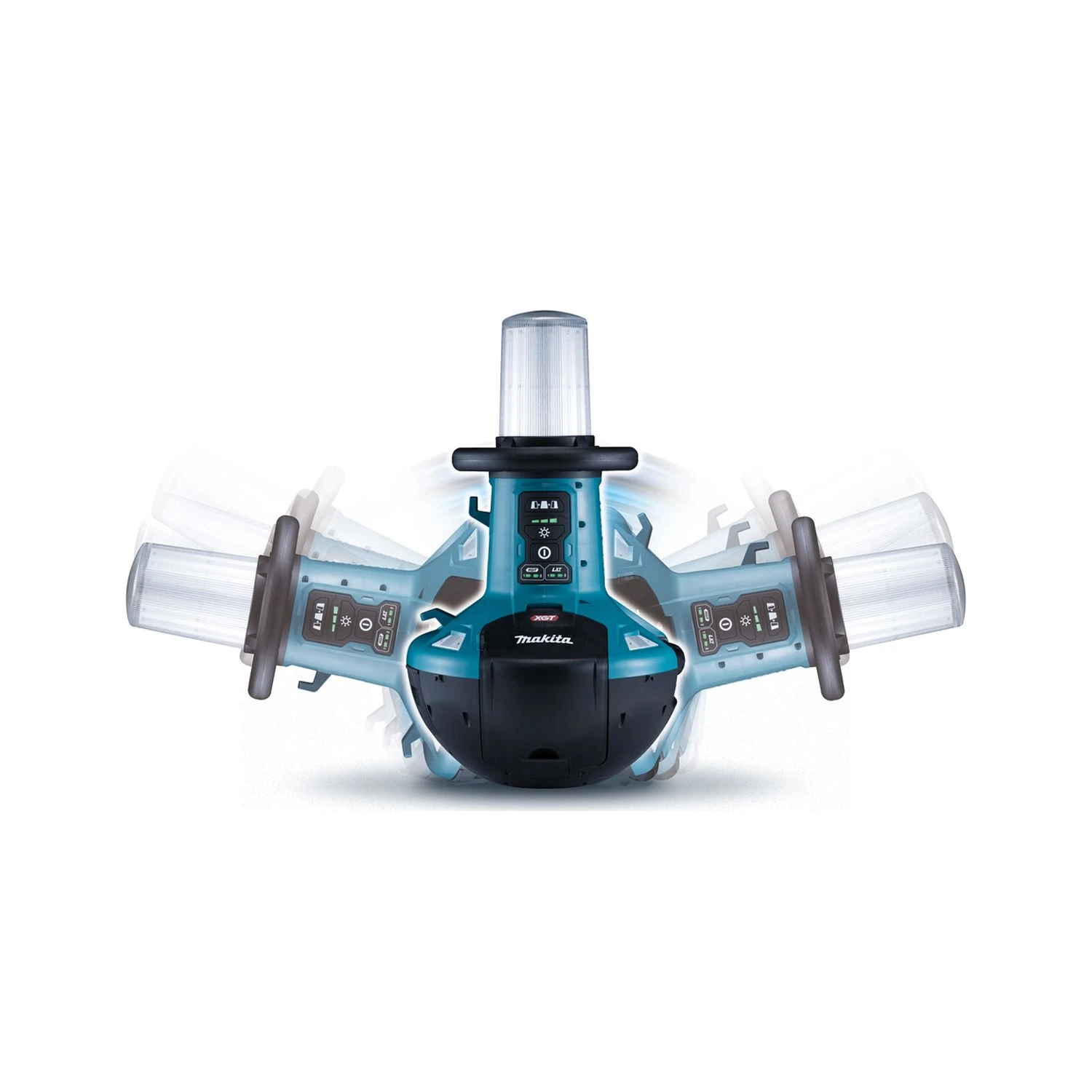The Makita Cordless area work light, can be powered by 3 sources – 40V Max XGT®. Self-righting design – won’t fall over even if tilted up to 80 degrees. Complete with AC outlet for connecting multiple units together – a maximum of 8 units can be connected together.