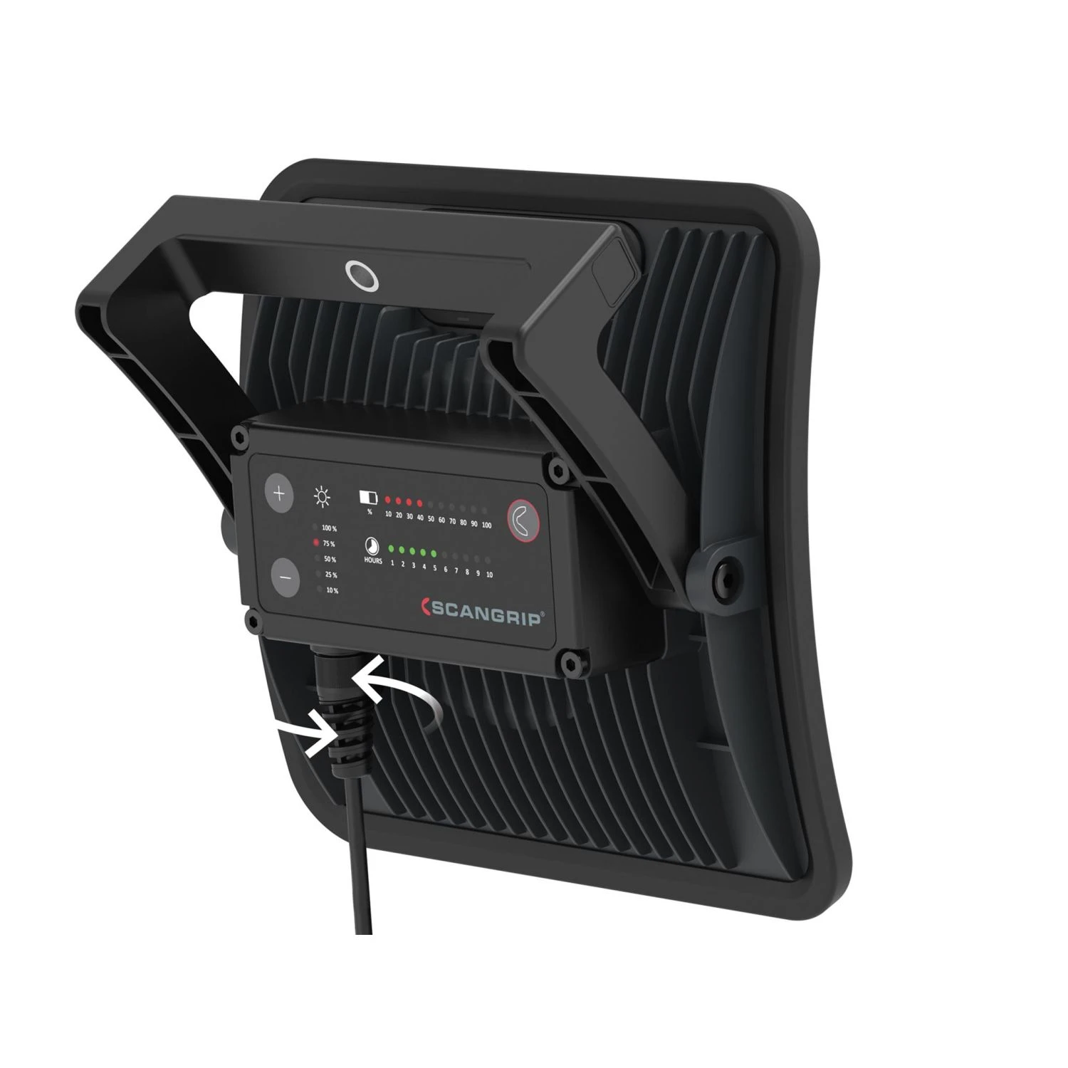 The SCANGRIP® NOVA C+R DUAL SYSTEM COB LED Work Light can be powered by its built-in, rechargeable Li-ion battery or by plugging into the mains (240V). A user friendly display shows both battery capacity and remaining operating time. It features the latest COB LED technology and a five-step dimming function enabling the light output to be adjusted within a 10% to 100% range. The sturdy die-casted aluminium construction is perfect for use in demanding rough working environments. Integrated carrying handle with a flexible stand can be used as a hanger enabling the work light to be positioned to the desired angle. It also enables mounting on to the SCANGRIP® Tripod or Scaffolding Bracket (both SOLD SEPARATELY) for extra versatility. The CRI value is close to daylight and the SCANGRIP® Diffuser (SOLD SEPARATELY) can be used to soften the light and avoid hard shadows.