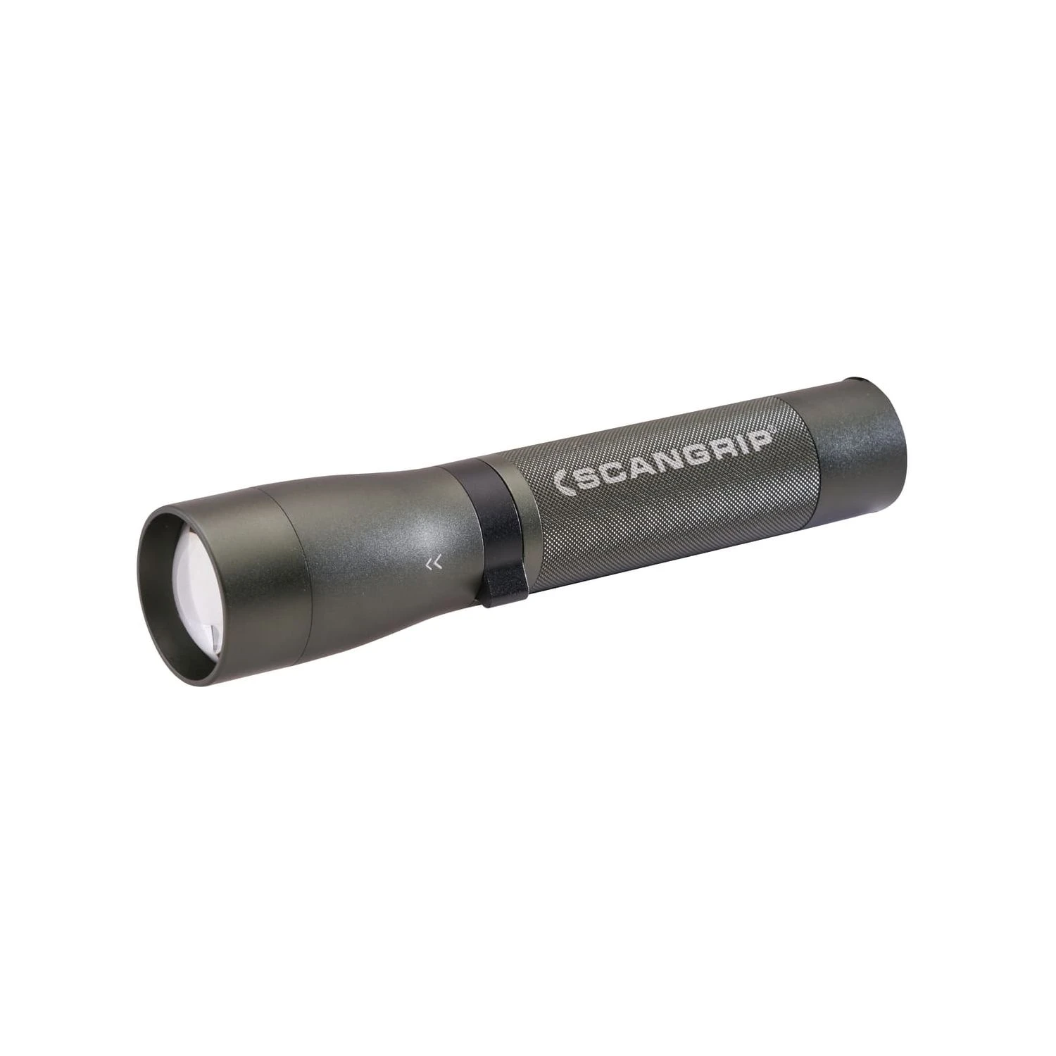 A focus function allows you to vary the beam angle from 10° to 70°, from concentrated and focused light beam angle to long-distance light. Light output reaches up to 150m. The housing is made of anodised aluminium for high durability, an ergonomic and safe grip. Waterproof, IP54.