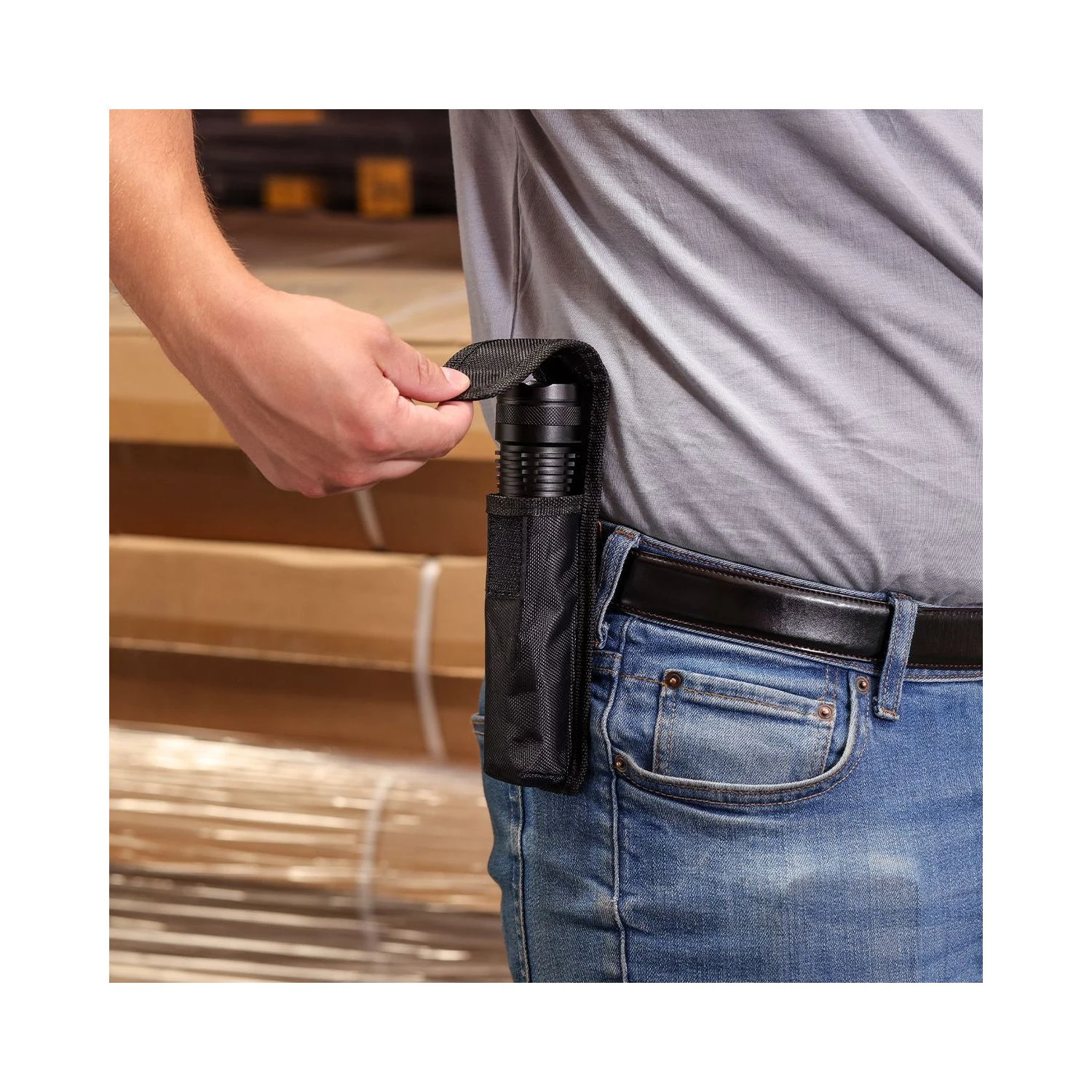 - Ultra-bright: This high-power LED torch is equipped with an XHP50 core chip so that it delivers a light output of 1200 lumens (max). This super-bright mini torch can easily illuminate a 100m² room and can sweep bright light over the length of about 2 football fields (200m). It’s very suitable for working on a wide variety of tasks, e.g. inspecting ductwork & pipework, making vehicle repairs etc
